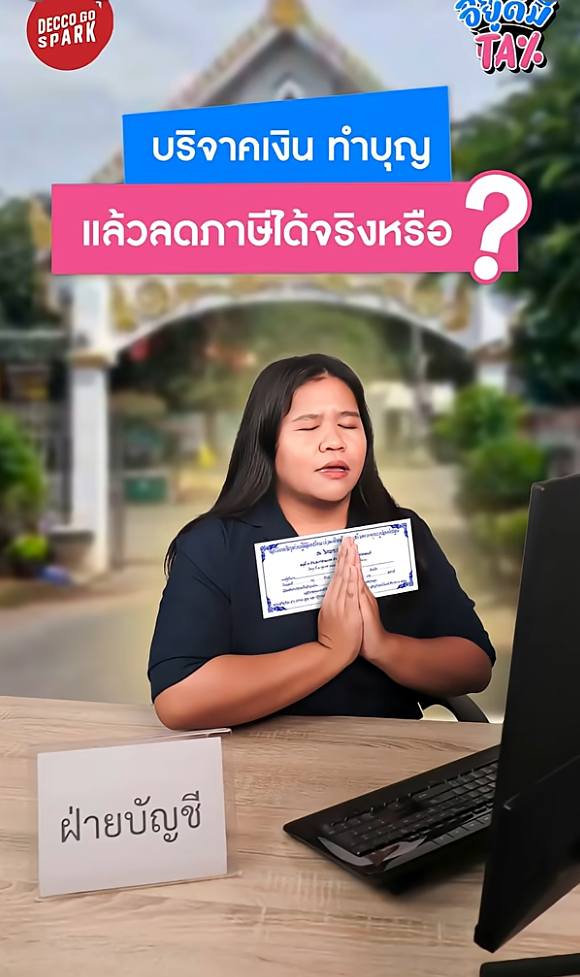 หน้าแรก อยู่ดีมีTax บริจาคเงินทำบุญ แล้วลดภาษีได้จริงหรือ? อยู่ดีมีTax บริจาคเงินทำบุญ แล้วลดภาษีได้จริงหรือ? โดย decco gospark - 20 ตุลาคม 2025 0 76 FacebookTwitterPinterestWhatsApp รู้ไว้ไม่เสียหาย เงินบริจาคเพื่อทำบุญ เอามาลดหย่อนภาษีได้มั้ยน้าาา #deccogospark #อยู่ดีมีtax #วัด บทความที่เกี่ยวข้องเพิ่มเติมจากผู้เขียน เปรียบเทียบ บุคคล VS บริษัท เริ่มทำธุรกิจจดทะเบียนรูปแบบไหนดี? ทิ้งคำตอบไว้ ยกเลิกการตอบ กรุณาใส่ความคิดเห็นของคุณ! กรุณาใส่ชื่อของคุณที่นี่ คุณป้อนที่อยู่อีเมลไม่ถูกต้อง! กรุณาใส่ที่อยู่อีเมลของคุณที่นี่ บันทึกชื่ออีเมลและเว็บไซต์ของฉันในเบราว์เซอร์นี้ในครั้งต่อไปที่ฉันแสดงความคิดเห็น